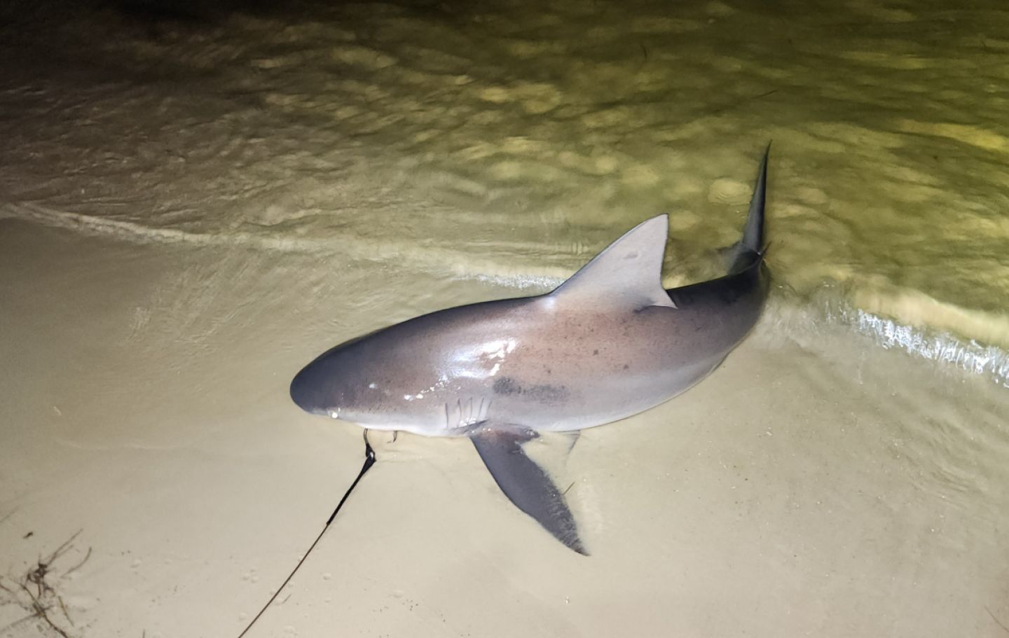 Bull sharks are the bruisers of the bunch - thick, powerful, and absolutely relentless when hooked. These sharks can handle both salt and fresh water, which means they're comfortable in the shallow, murky water close to shore where other species might be more cautious. Bulls in the 4-8 foot range are common in our area, and they fight more like underwater bulldozers than the sleek predators you might imagine. When a bull shark decides it doesn't want to come to the beach, you're in for a serious tug-of-war that can last 20-30 minutes.
